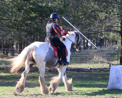 I started as a Mounted Games rider first, and soon worked into Theatrical Jousting, all the while training hard and attending the Seattle Knights Stage Combat Training Academy graduating all levels of weapons use for stage combat on & off horse. A decade of training and show experience that benefited my medieval work,